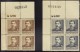 The 1952-53 Christmas issue in two corner blocks, one plated.