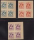 Special Christmas tuberculosis campaign stamps. Non postal. Charity purposes. Santa Claus. Blocks of four.