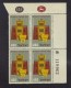 Bezalel Museum and ancient lamp in plated corner block of 4 stamps.