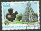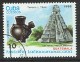 Pre-Columbian artifacs . Guatemala Tikal temple and Maya vase .